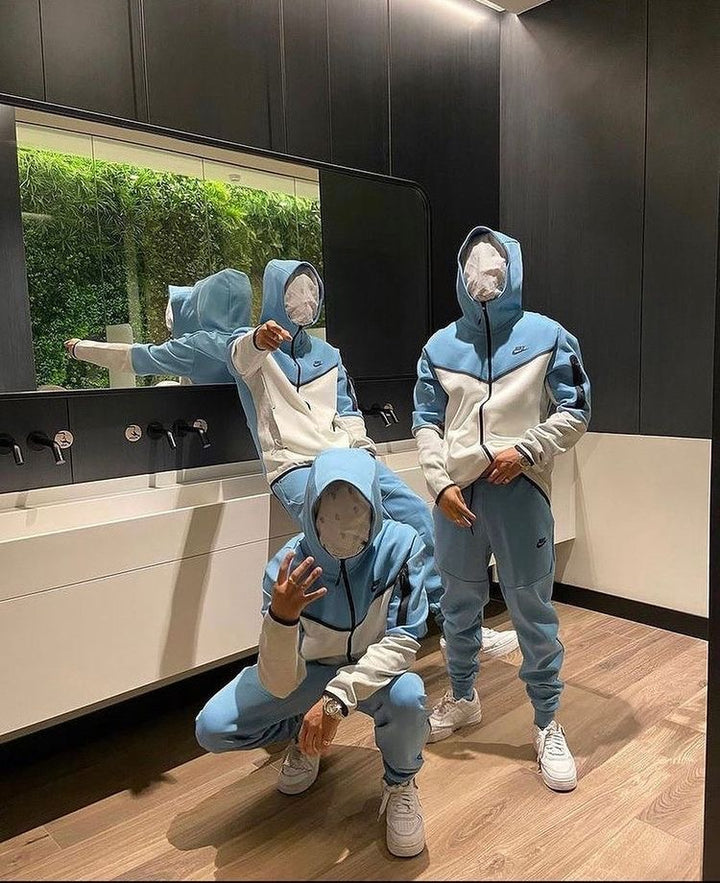 Nike tech ازرق&ابيض البنطلون بيجي نفس الجاكيت لونين